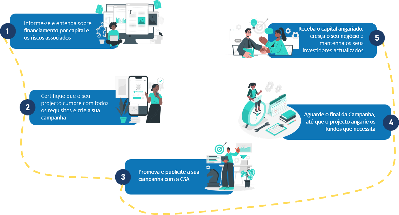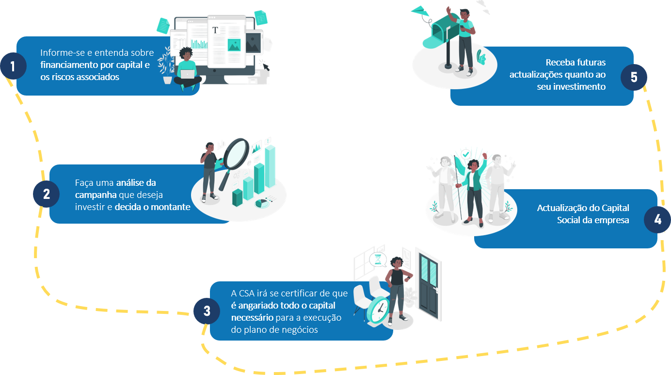 A plataforma C.S.A., como plataforma de equity crowdfunding, permite que os investidores comprem ações ou participações de empresas. Esta plataforma visa preencher uma lacuna no mercado de investimento e financiamento para startups e PME’s em Angola. As opções actuais em Angola tanto a nível de investimento como a nível de financiamento, são limitadas, havendo grande margem para de progresso para o empreendorismo em Angola através do equity crowdfunding.